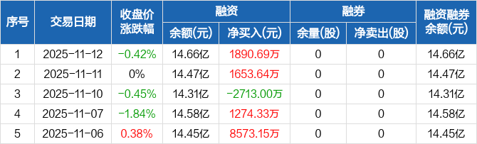 荣科科技:融资余额14.66亿元,创历史新高(11-12)
