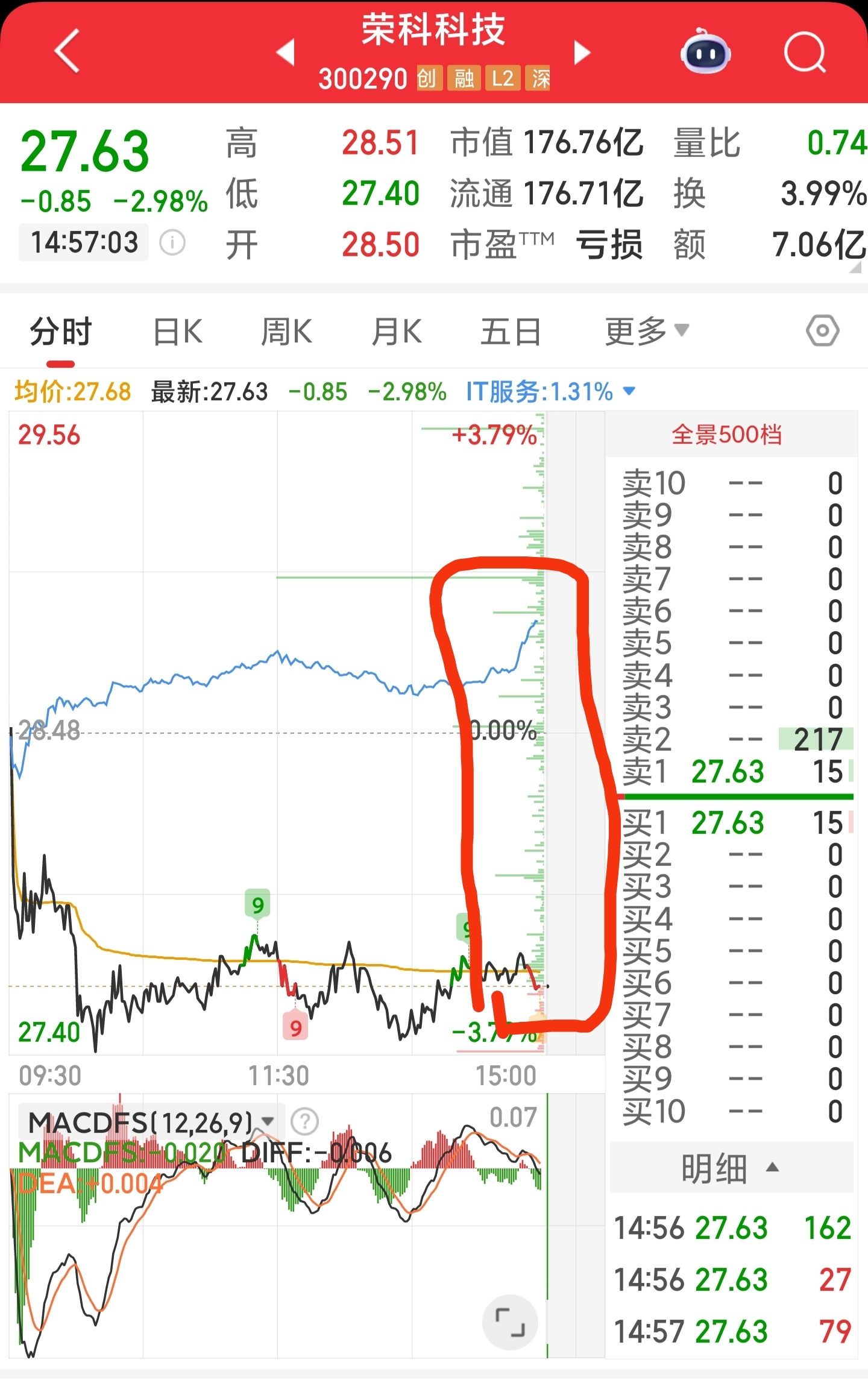 最后时刻大盘和板块狂拉,荣科狂跌。真厉害