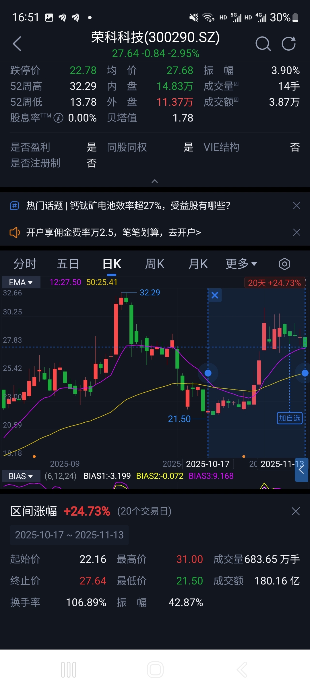 今晚不会停牌吧?创业板近20日涨幅5.41%荣科24.73%!24.73-5.4