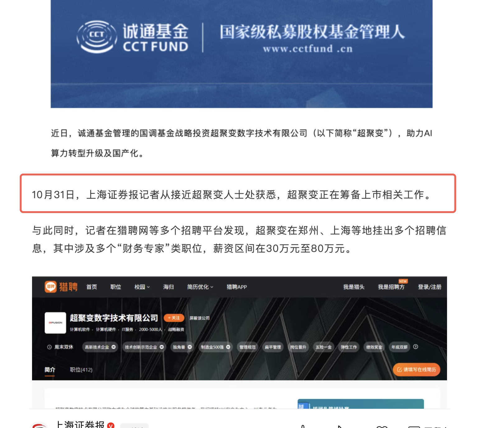 上海证券报今日文章:超聚变正在筹备上市相关工作