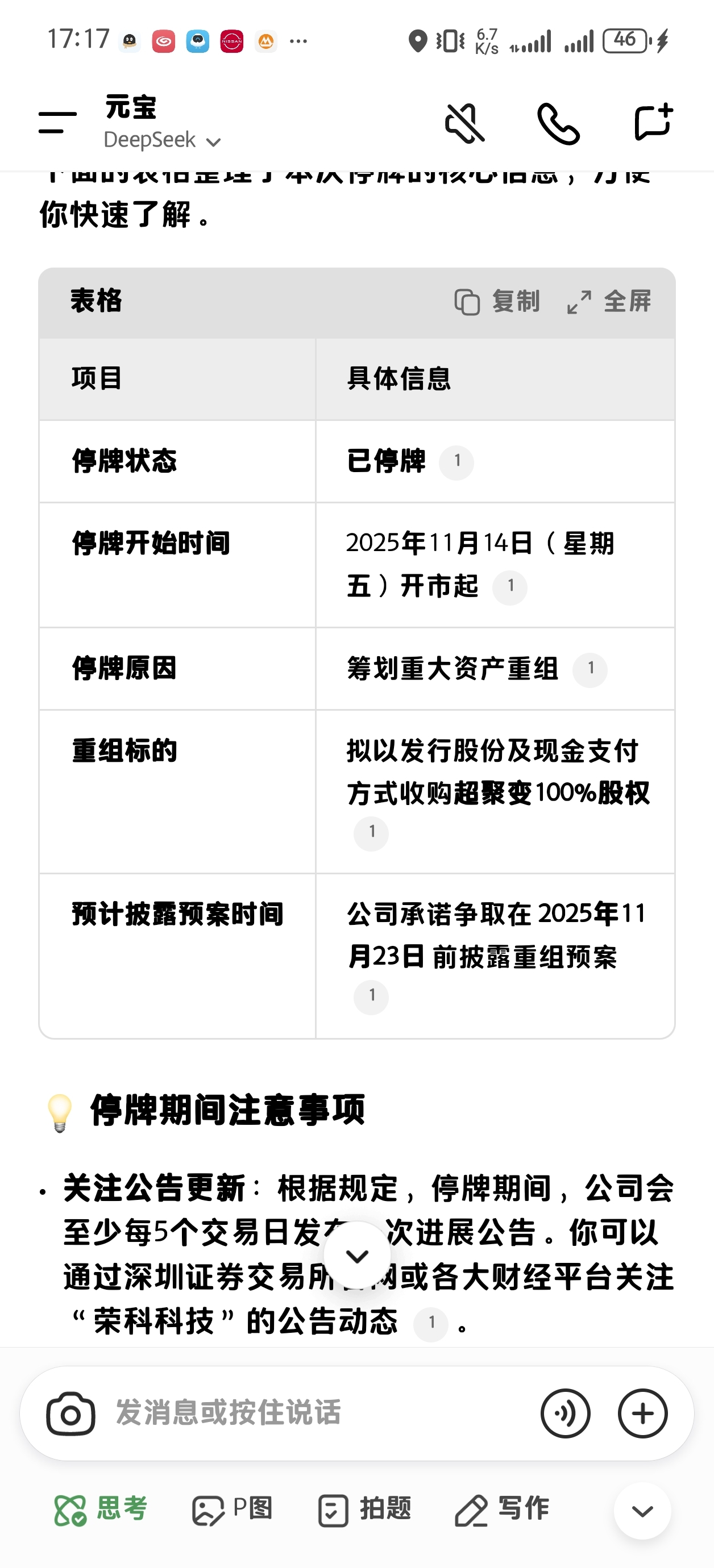 $荣科科技(SZ300290)$ 元宝也是停牌??