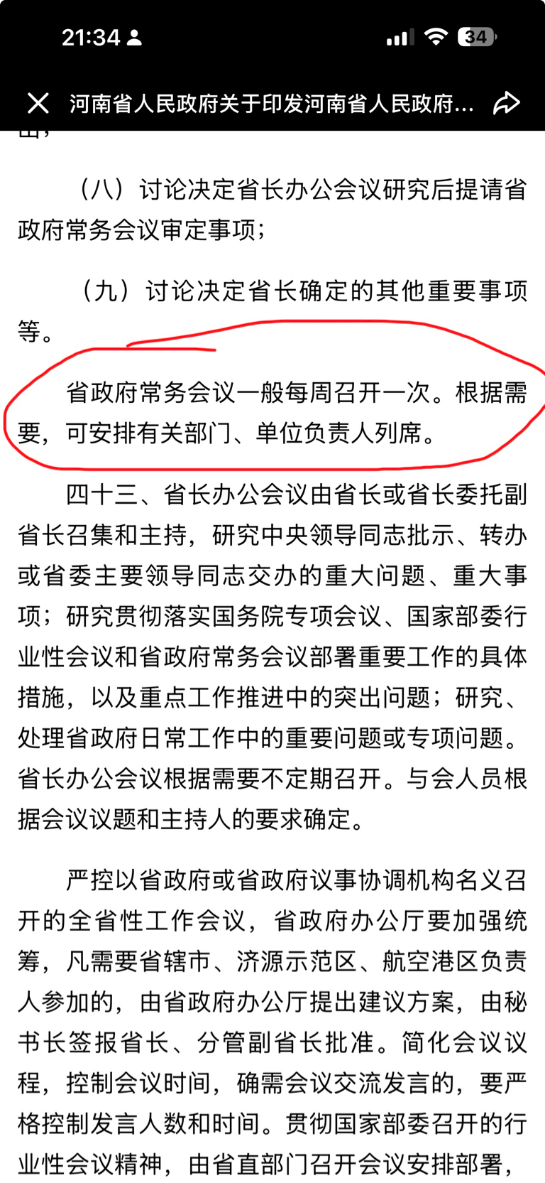 hn省里的常务会议是每周一次,比辽宁强,辽宁两周一次。按理说上周就工商备案完毕了