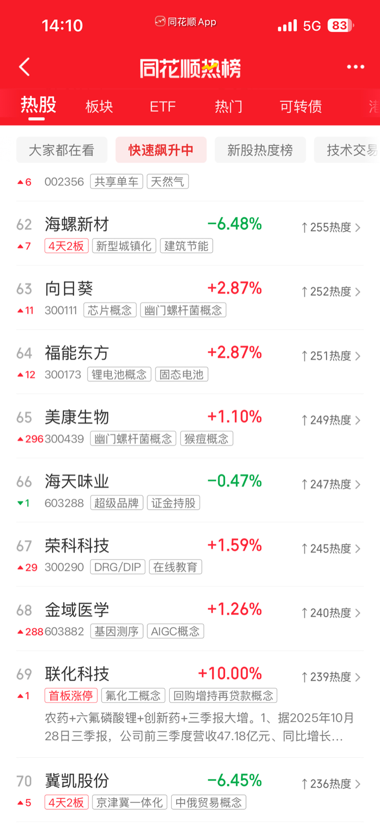 $荣科科技(SZ300290)$ 同花顺人气飙升