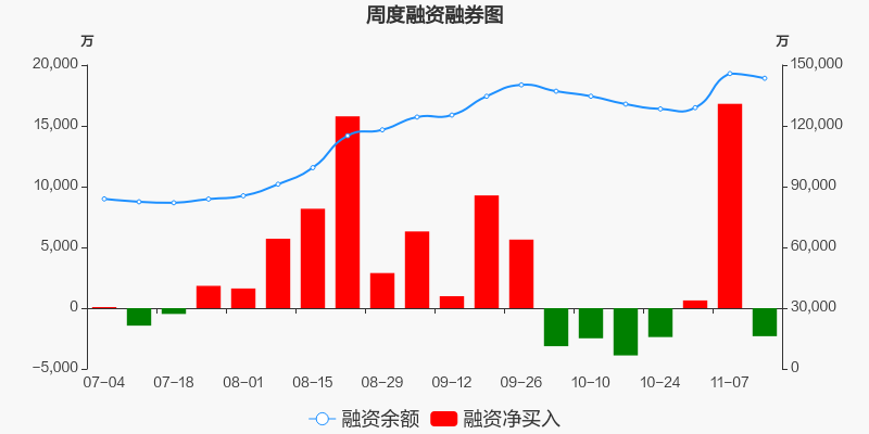 荣科科技本周(2025/11/10-2025/11/14)累计跌幅达2.26%,截至11月14日最新股价报收28.08元。从增量上来看,11月10日至11月13日融资买入交易规模3.28亿元,融资偿还规模3.51亿元,期内融资净偿还2309.48万元。从存量上来看,截止11月16日,荣科科技融资融券余额14.35亿元,其中融资余额规模14.35亿元,融券余额规模0元。