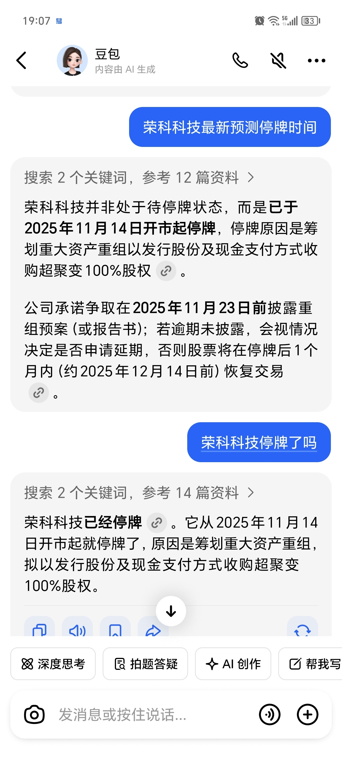 $荣科科技(SZ300290)$ 豆包出差错了,犯傻了