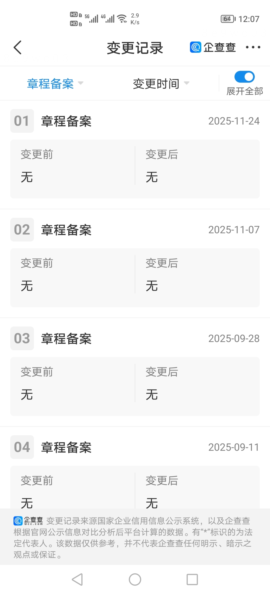 每一次章程备案后都有股份变动的