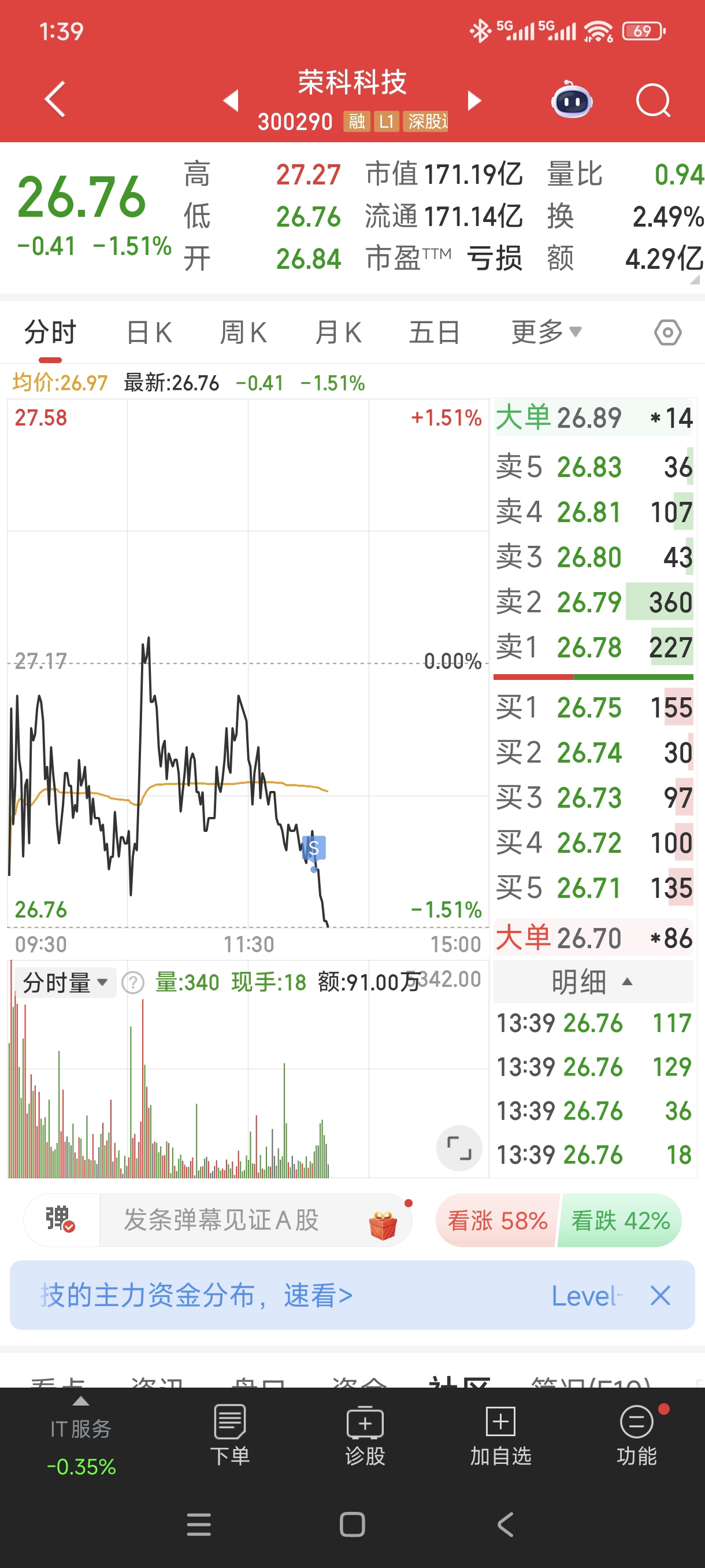 $荣科科技(SZ300290)$ 一直在临界点试探,主力烂的很,上不去那就咂