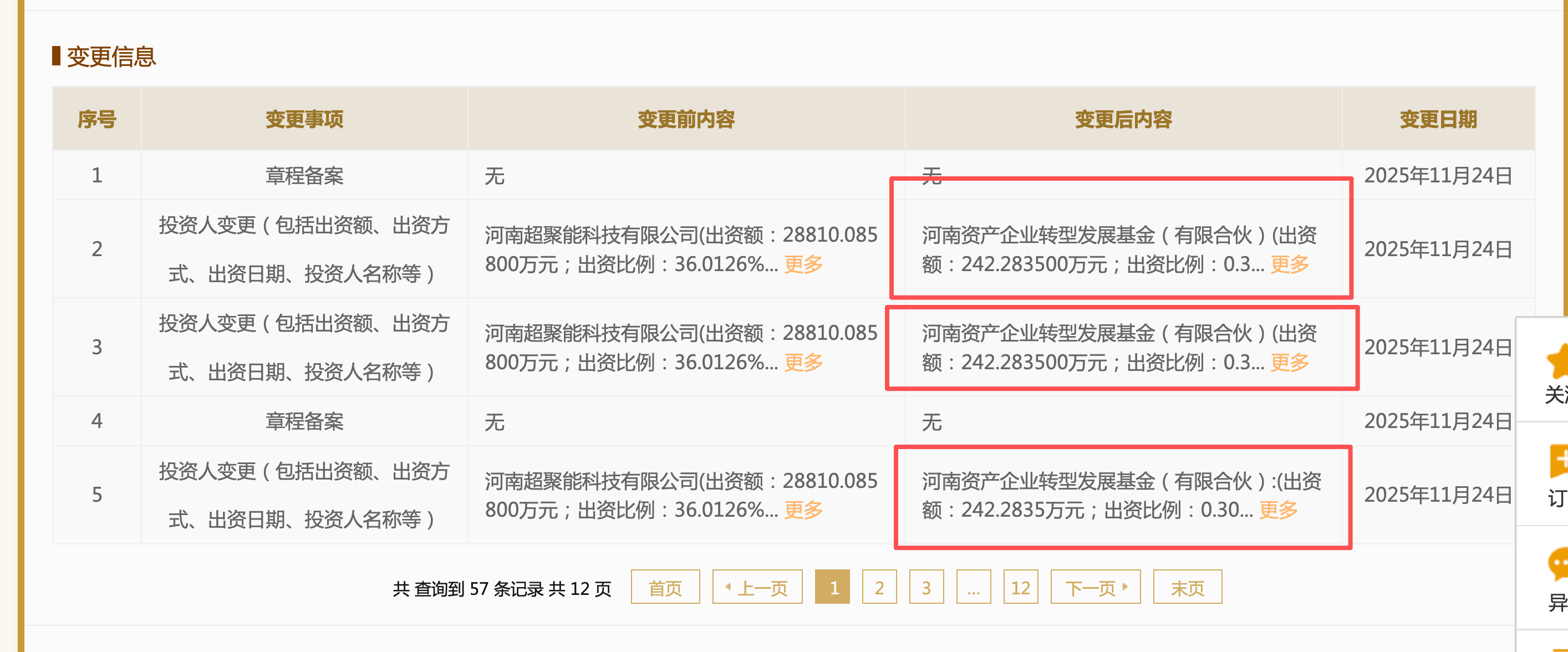 科普一下,如果你要查这次的变更,要把我划红框的三个“更多”都点开,然后把所有列出的股份都加一起,才是此次变更的结果。如果你只查一个更多里面的,当然就是不全的,正常有 35 个股东才对。