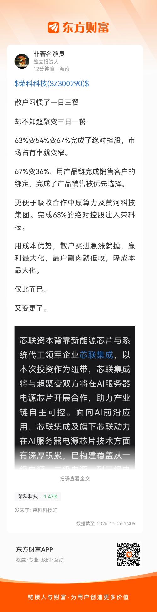 更便于吸收合作中原算力及黄河科技集团。完成63%的绝对控股注入荣科技。