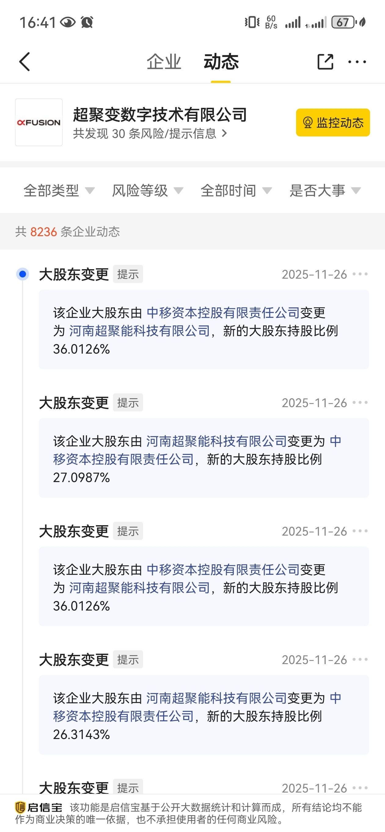 $荣科科技(SZ300290)$ 数据打架了!并引发恐慌,启信宝的股东信息是第一大股东是中移资本,持股比例是26%,总共25个股东;