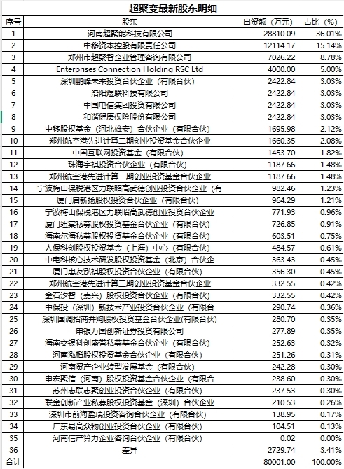 股份变动情况显示:河南超聚能科技有限公司持股比例下降,中移资本控股有限责任公司、中国电信集团投资有限公司等18家主体持股上升。郑州市超聚智企业管理咨询有限公司、郑州航空港先进计算二期创业投资基金合伙企业(有限合伙)等10家新股东加入