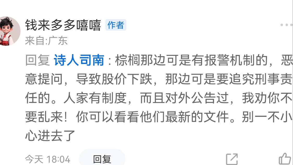 温馨提示: 1.根据《证券法》规定,禁止编造、传播虚假信息或者误导性信息,扰乱证券市场;2.用户在本社区发表的所有资料、言论等仅代表个人观点,与本网站立场无关,不对您构成任何投资建议。用户应基于自己的独立判断,自行决定证券投资并承担相应风险。《东方财富社区管理规定》