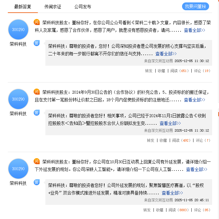 上次最后回复投资者的问题是2026年11月5日,今天是2026年12月5日,一个