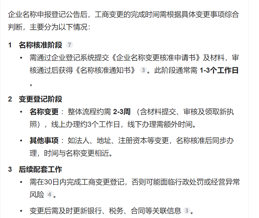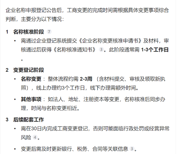 企业名称变更登记后,工商变更的时间是否如图所示?