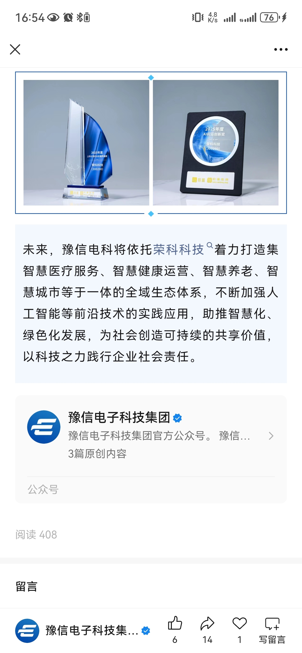 $荣科科技(SZ300290)$ 豫信电科将依托荣科科技着力打造集智慧医疗服务、智慧健康运营、智慧养老、智慧城市等于一体的全域生态体系,不断加强人工智能等前沿技术的实践应用,助推智慧化、绿色化发展,为社会创造可持续的共享价值,以科技之力践行企业社会责任。