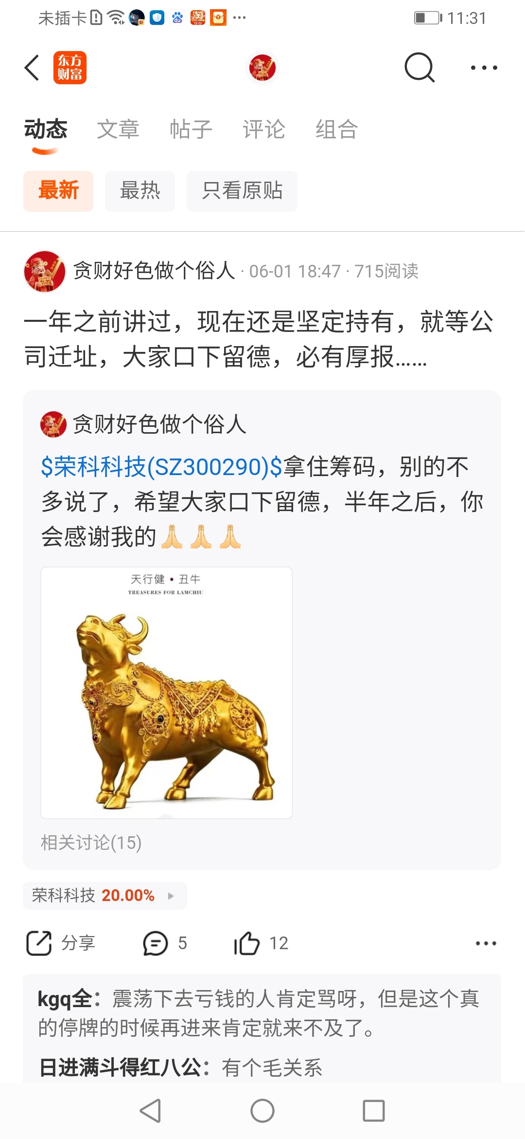 $荣科科技(SZ300290)$ 感谢贪财哥……