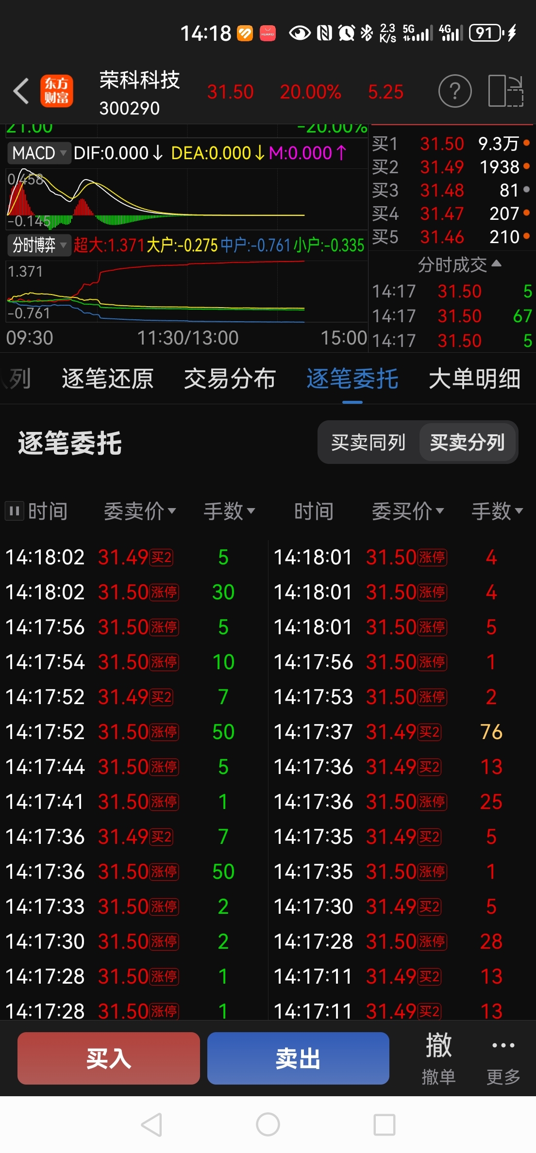 $荣科科技(SZ300290)$ 怎么还有那么大的卖单?看情形,有可能开板!
