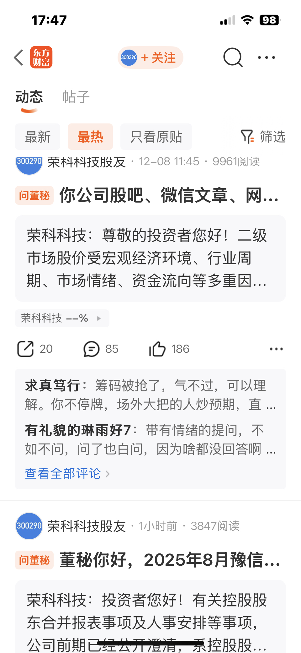 $荣科科技(SZ300290)$ 钱多多现在换马甲了,网名改成"荣科科技股友",这处生没有持股尽在捣乱。