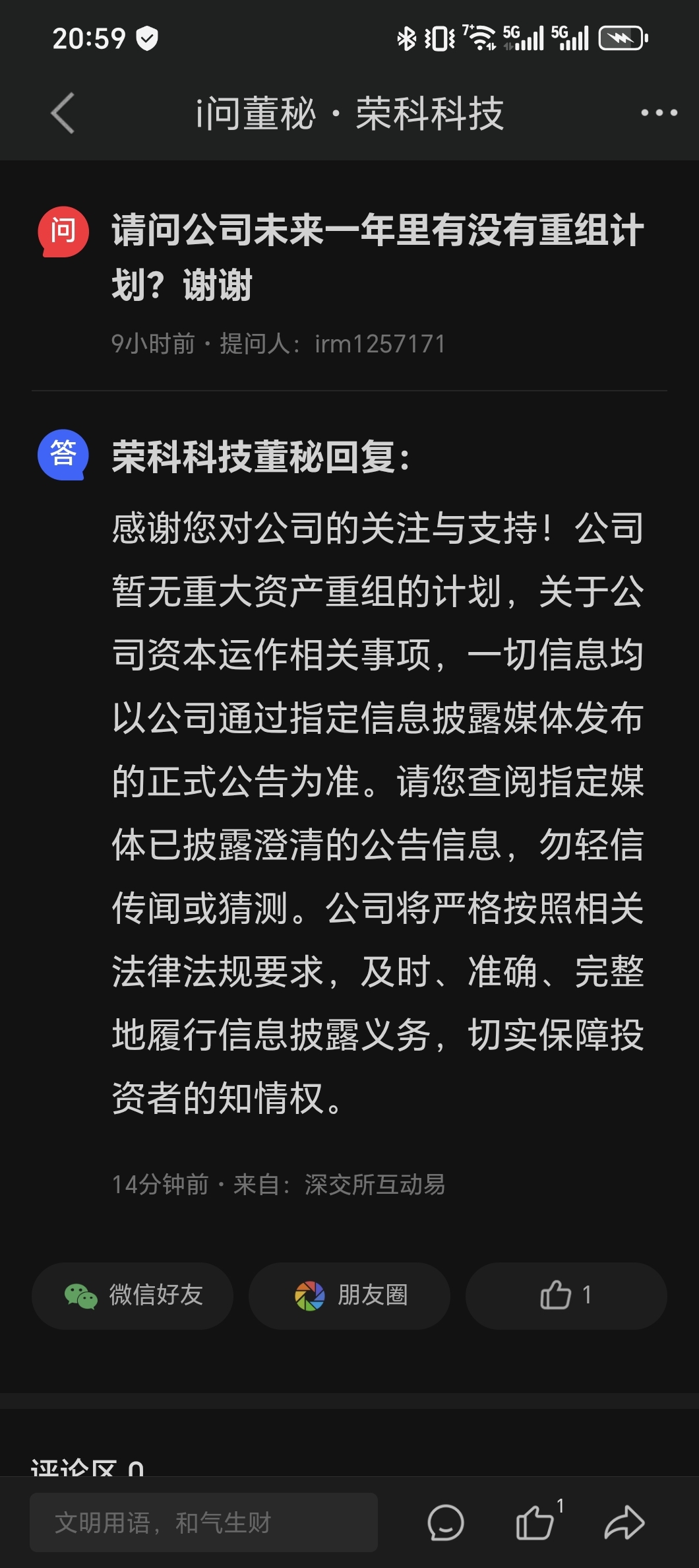 $荣科科技(SZ300290)$ 喜欢你着急忙慌打压的样子,难道是今天提的问题找了四个小时总算找到了,赶紧回复下