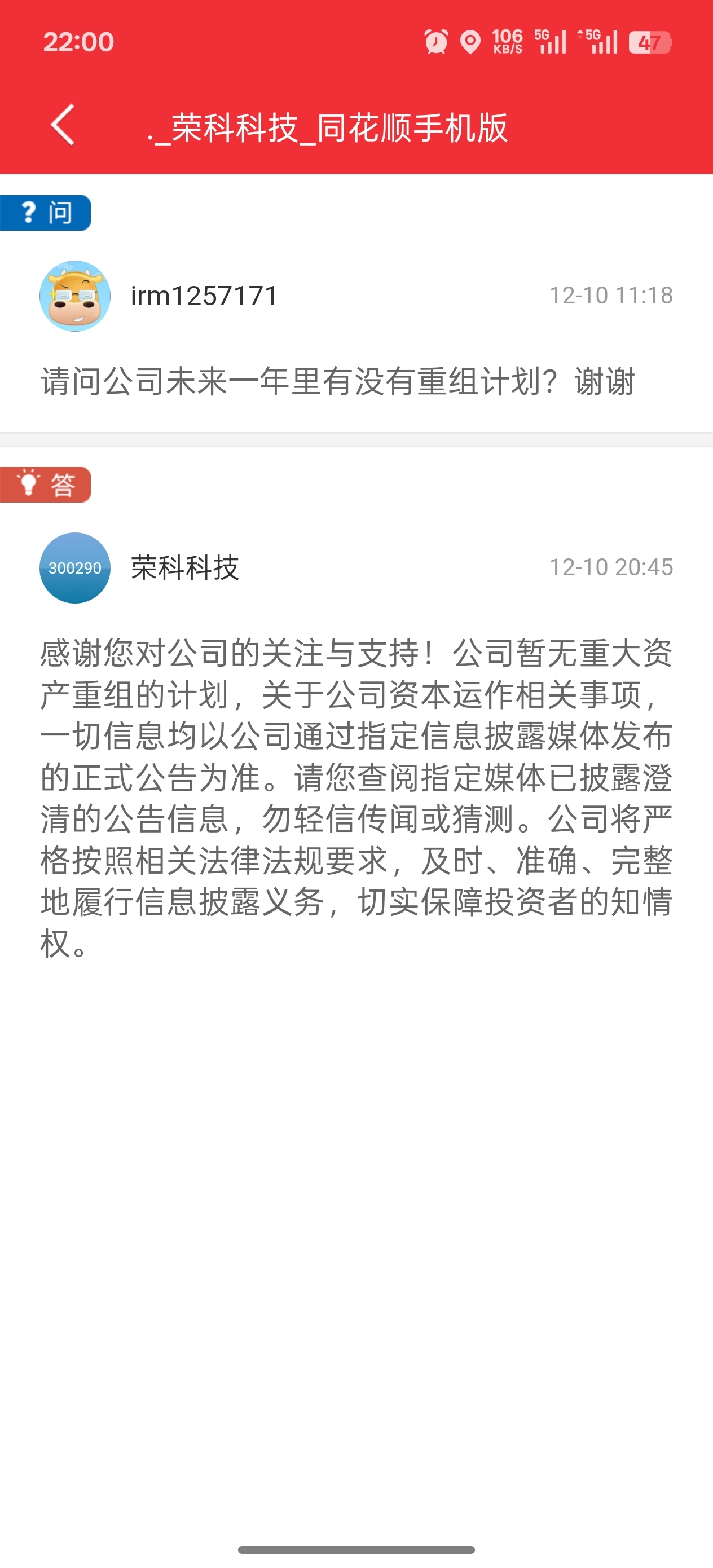 同花顺显示这个问题是中午问的并不是11秒就回答了而是隔了半天