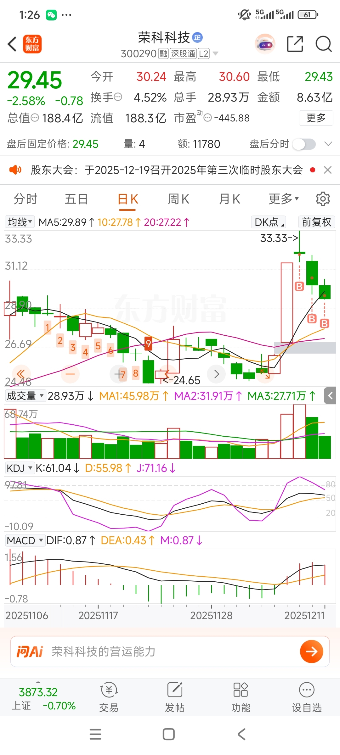 $荣科科技(SZ300290)$ 连续购买三天了,明天大概率会上涨,集合竞价高开2-3个点,然后拉升,大家多多关注!