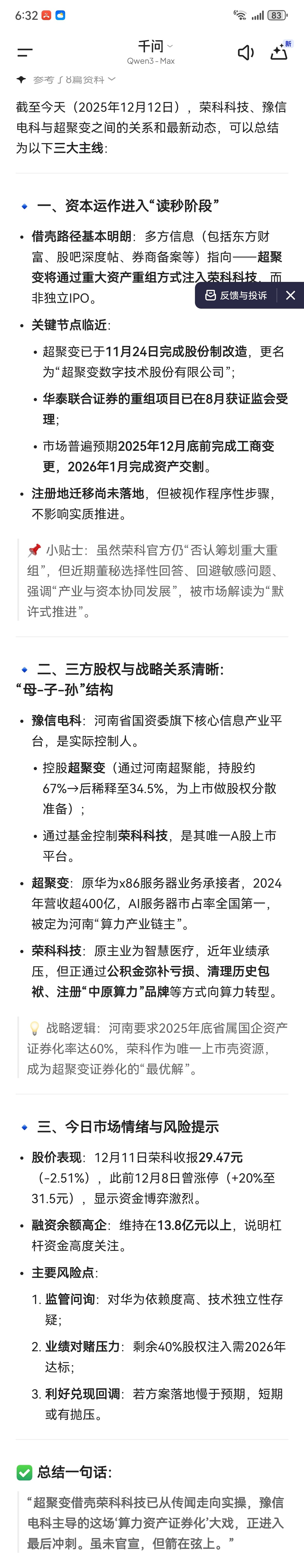 $荣科科技(SZ300290)$ 超聚变借壳荣科科技已从传闻走向实操,豫信电科主导的这场‘算力资产证券化’大戏,正进入最后冲刺。虽未官宣,但箭在弦上。”