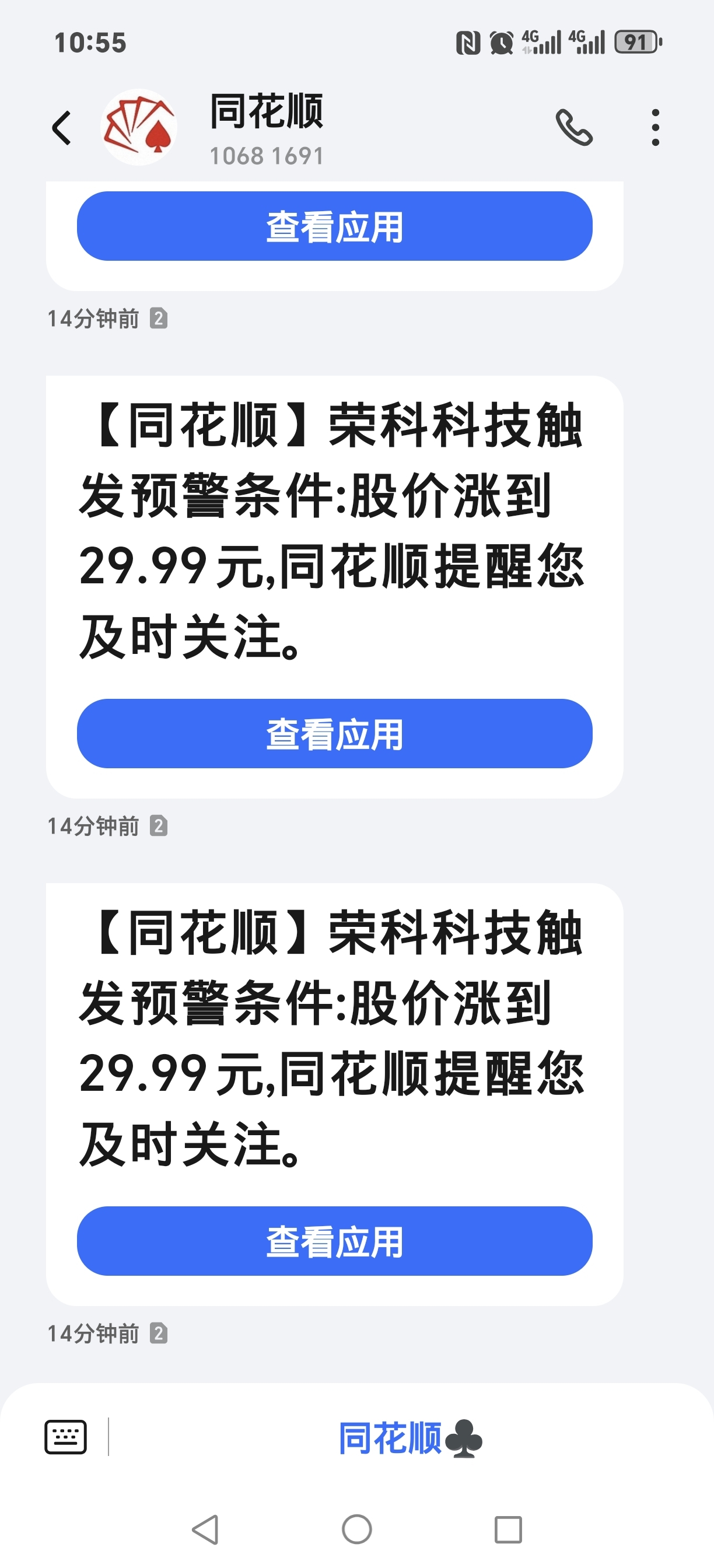 同花顺设的荣科29.99元提醒短信,今天发了26遍了,有大资金在控盘