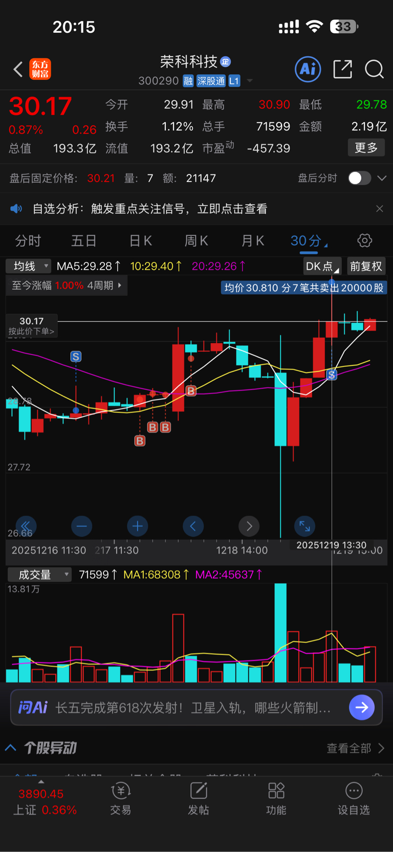 $荣科科技(SZ300290)$ 今晚没停盘,周五出来了。不知道对错。