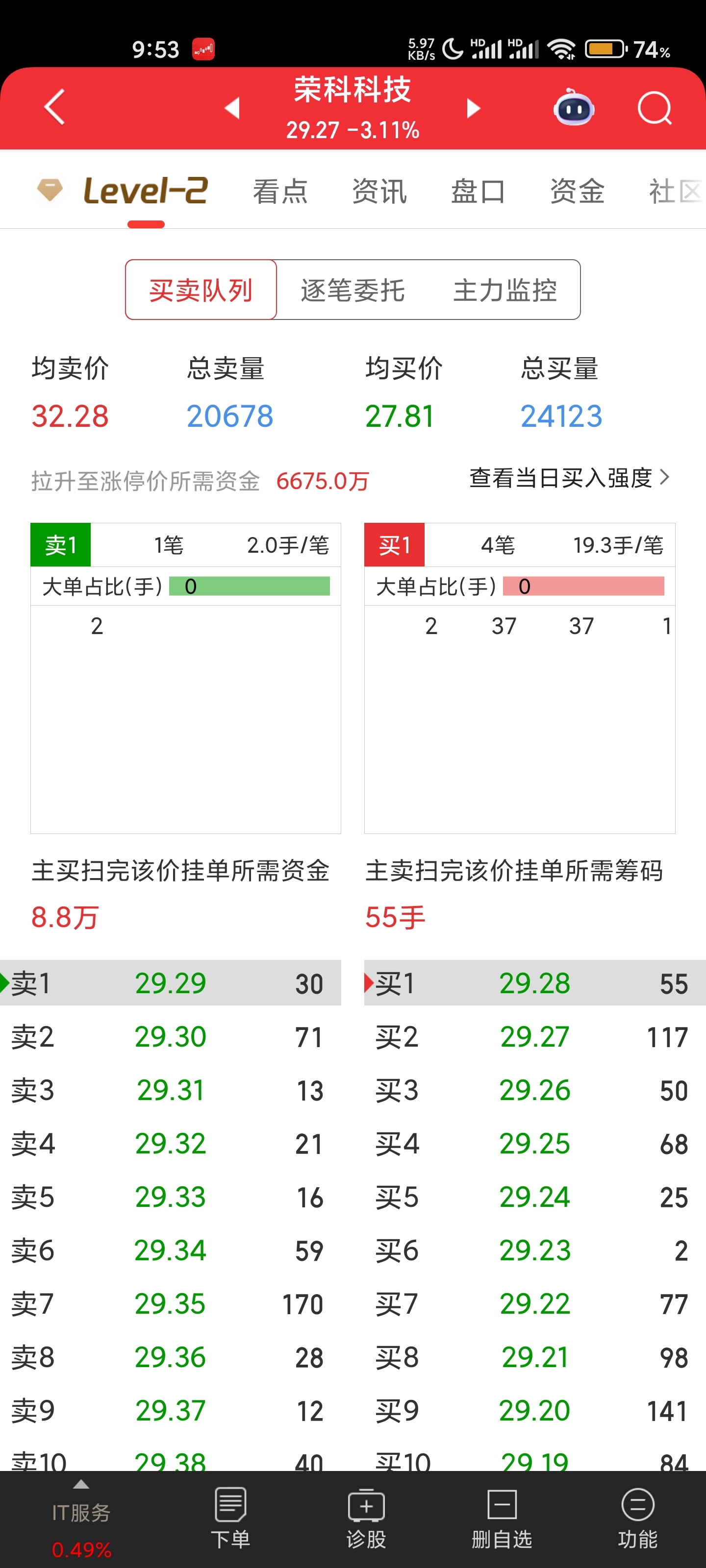 $荣科科技(SZ300290)$ 一般跌下来买盘大于买盘基本都难涨。