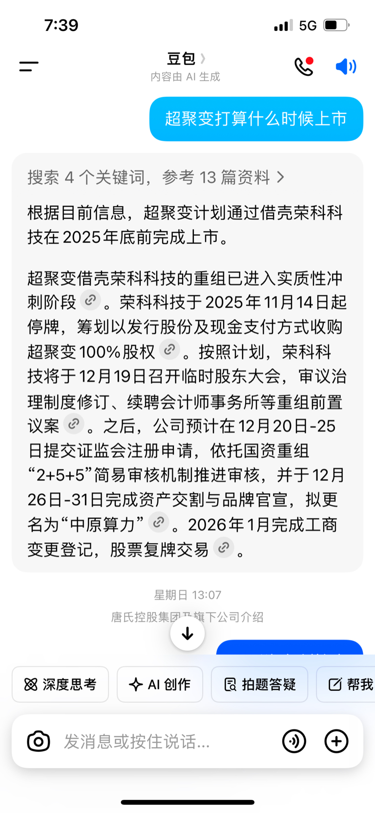 散户全是看着豆包借壳进来了吧,在豆包里面荣科已经停牌了一个多月。