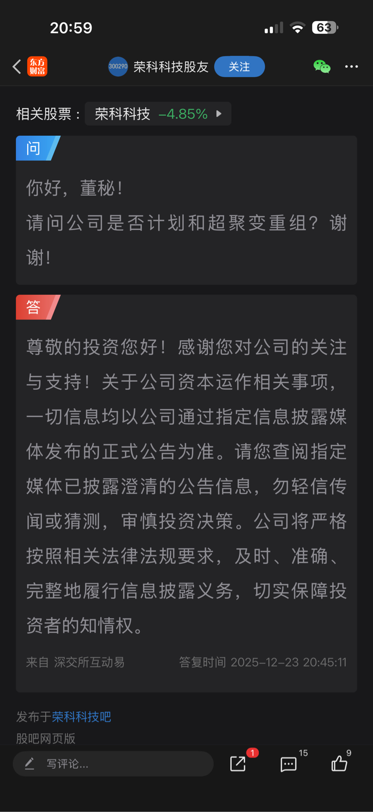 温馨提示: 1.根据《证券法》规定,禁止编造、传播虚假信息或者误导性信息,扰乱证券市场;2.用户在本社区发表的所有资料、言论等仅代表个人观点,与本网站立场无关,不对您构成任何投资建议。用户应基于自己的独立判断,自行决定证券投资并承担相应风险。《东方财富社区管理规定》