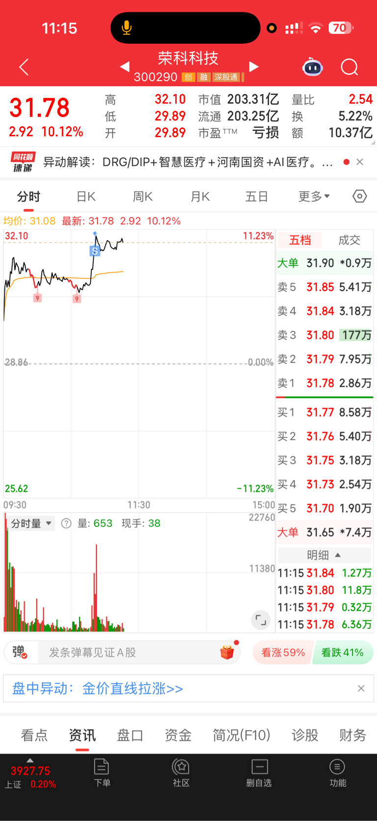 $荣科科技(SZ300290)$ 挂32卖出去了,估计会后悔