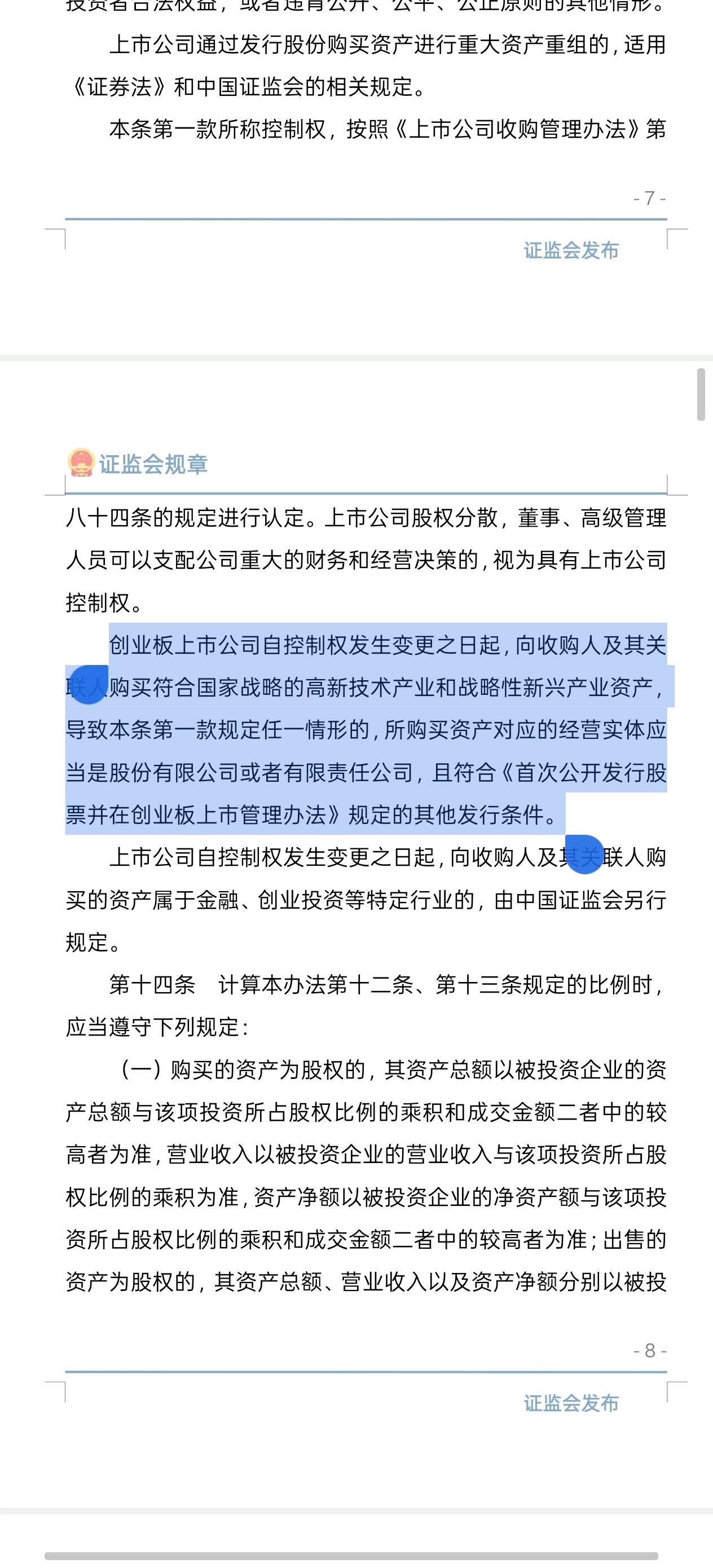 $荣科科技(SZ300290)$ 创业板上市公司自控制权发生变更之日起,向收购人及其关联人购买符合国家战略的高新技术产业和战略性新兴产业资产,导致本条第一款规定任一情形的,所购买资产对应的经营实体应当是股份有限公司或者有限责任公司,且符合《首次公开发行股票并在创业板上市管理办法》规定的其他发行条件。