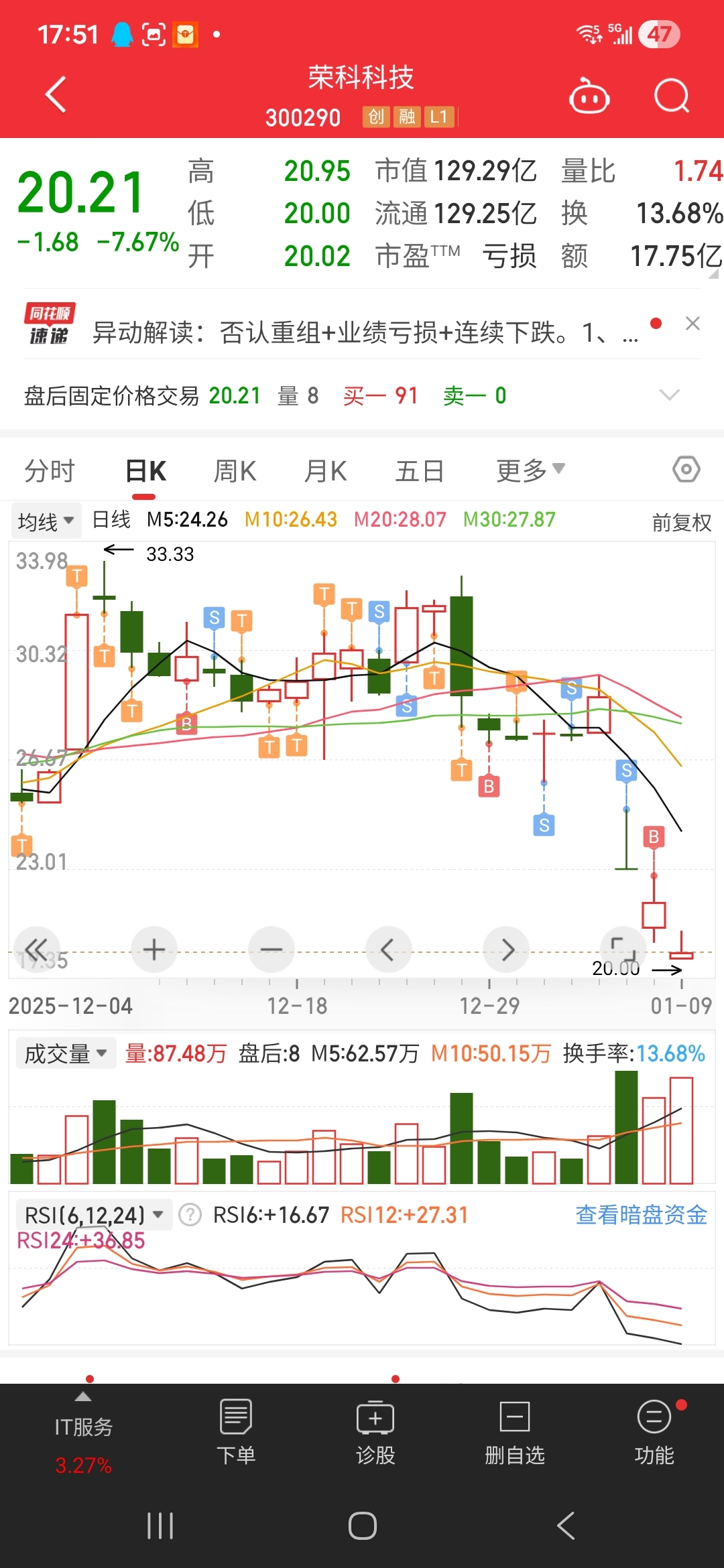 $荣科科技(SZ300290)$ 仓位在跌停那天出了大部分,后买入小部分。