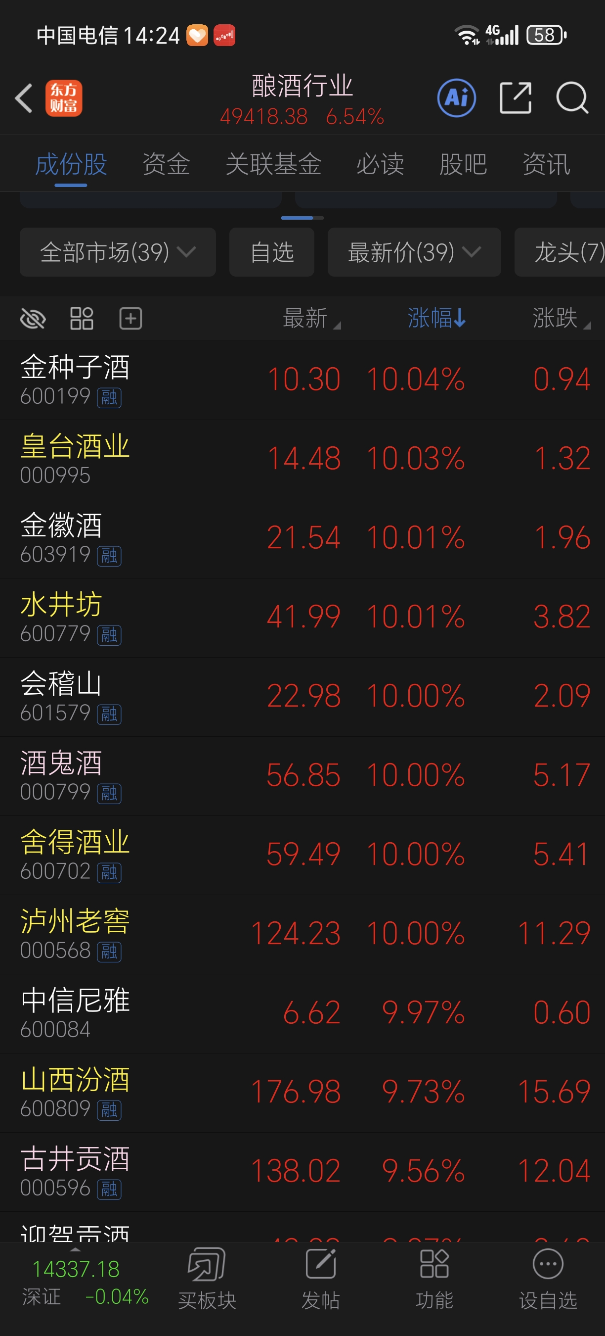 地产白酒涨停潮,大牛市啊,不涨的开始补涨了轮番大涨