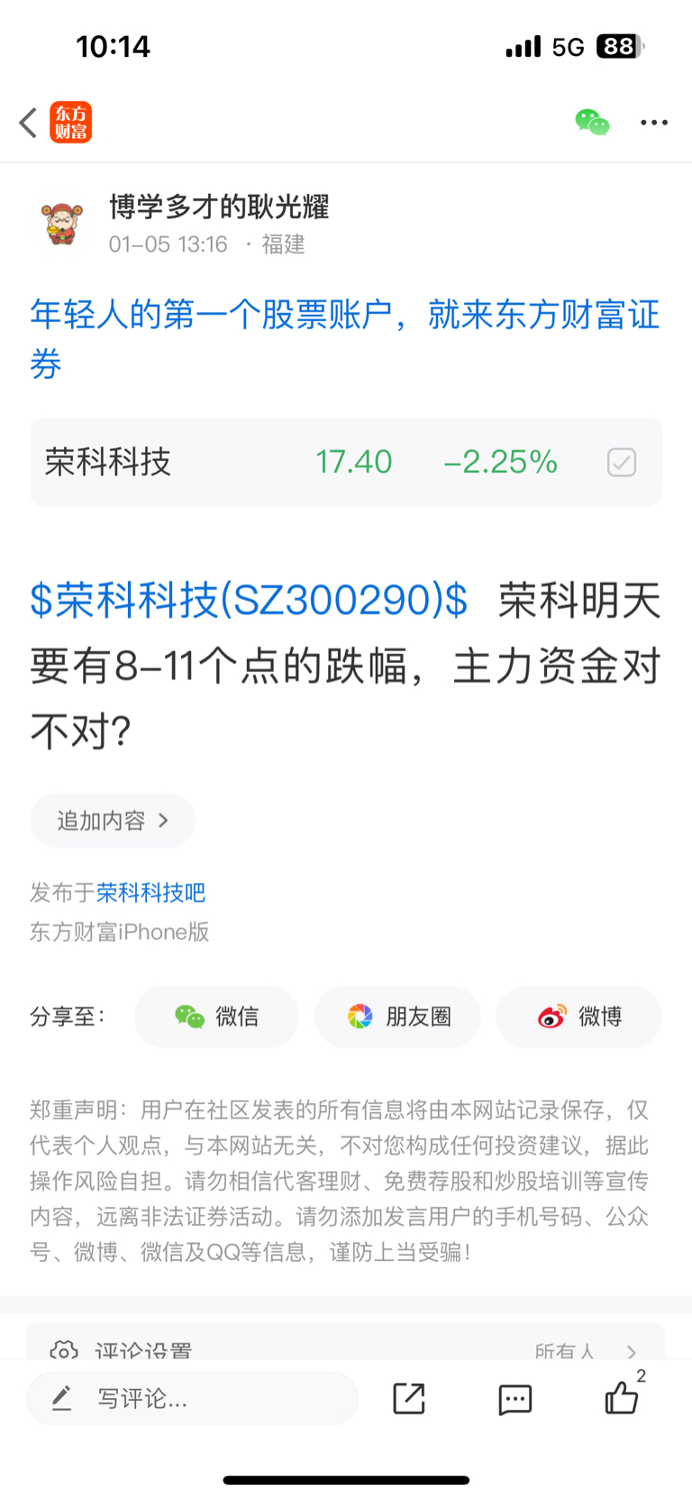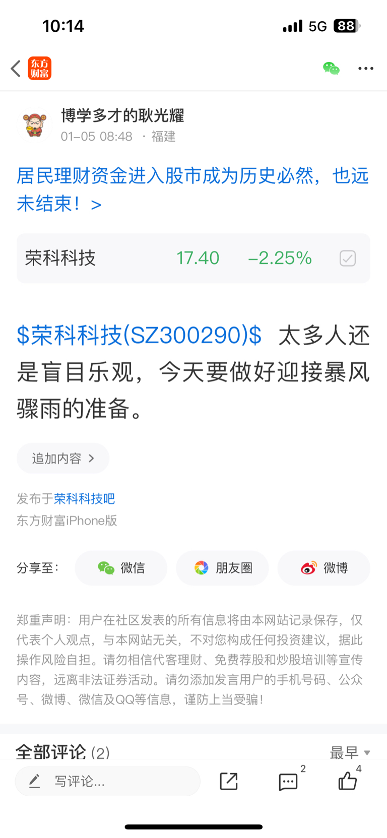 温馨提示: 1.根据《证券法》规定,禁止编造、传播虚假信息或者误导性信息,扰乱证券市场;2.用户在本社区发表的所有资料、言论等仅代表个人观点,与本网站立场无关,不对您构成任何投资建议。用户应基于自己的独立判断,自行决定证券投资并承担相应风险。《东方财富社区管理规定》