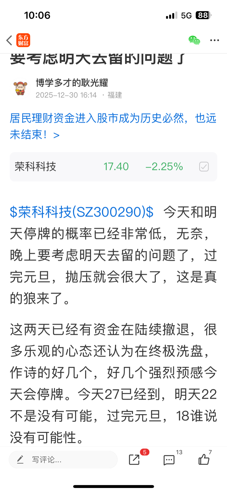 各位看看记录,12月30日,1月5日,1月6日我连续提醒各位要大跌,有人评论我是