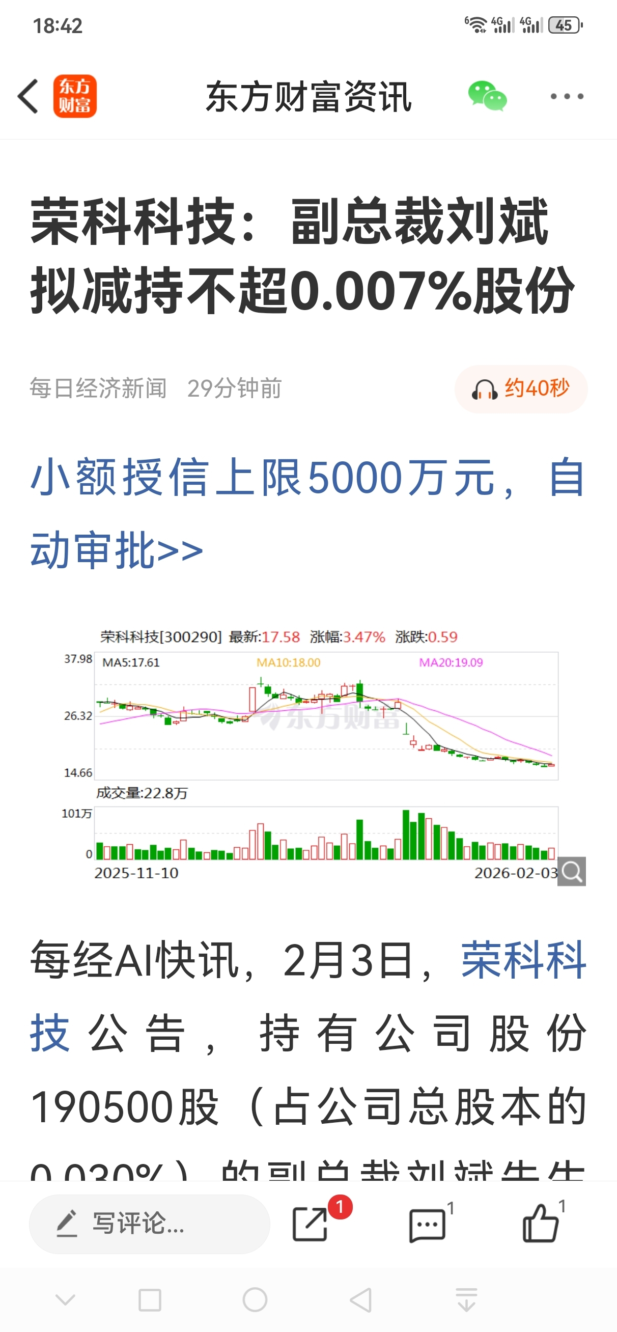 虽然减的不多但很恶心,荣科跌成这样了还要打压