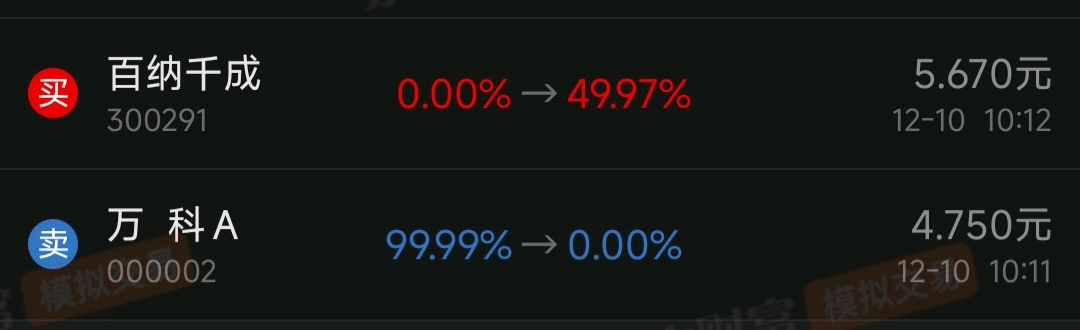 $百纳千成(SZ300291)$ 上午满仓的万科全换你了,少赚10几个点也值得