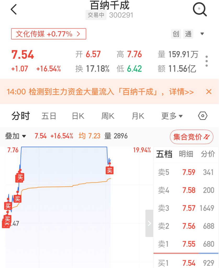 $百纳千成(SZ300291)$ 我诚实说明,不是我拉的