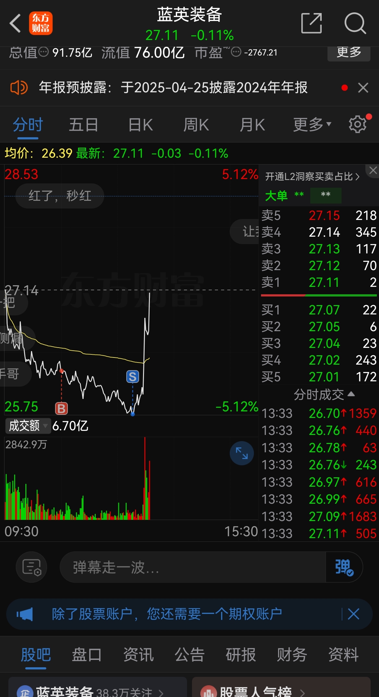 $蓝英装备(SZ300293)$ 天才交易员,但凡午觉睡到一点半都不至于这样