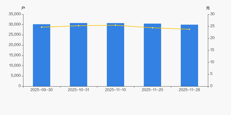自2025年10月31日以来,公司股东户数连续3期下降,截至目前减幅为2.62%。2025年10月31日至2025年11月28日区间股价下降5.90%。