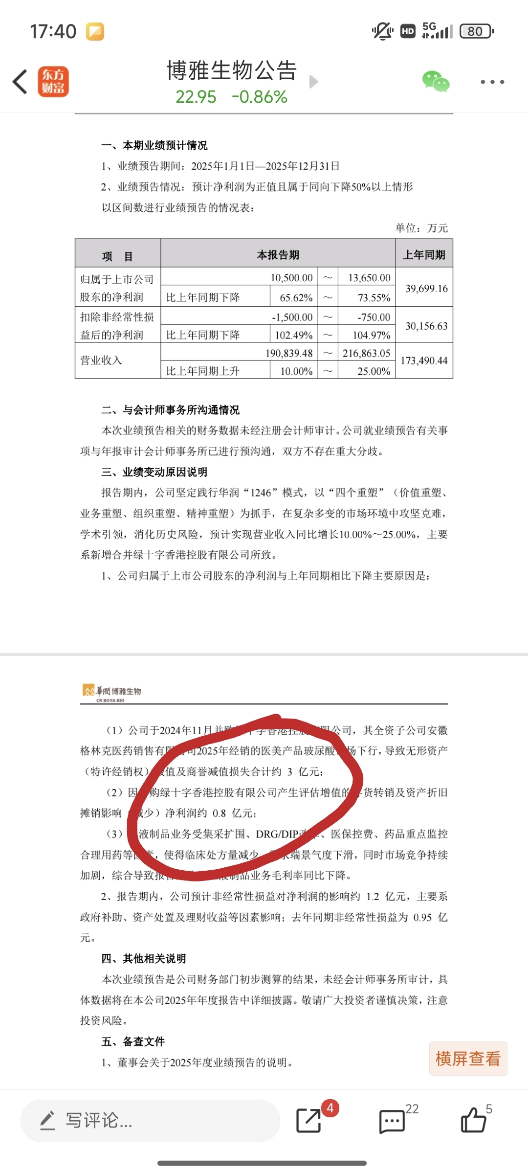 $博雅生物(SZ300294)$ 若不考虑收购绿十字造成的减值损失,利润大约5个亿,十分可观