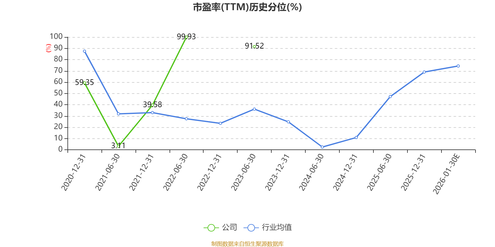 以本次披露业绩预告均值计算,公司近年市盈率(TTM)图如下所示: