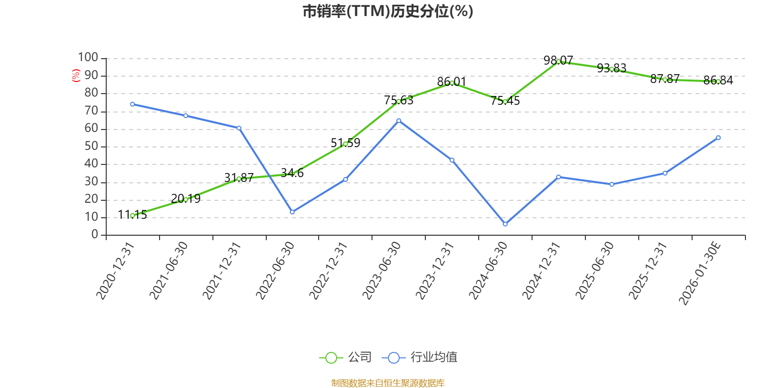 文中市盈率和市销率采用TTM方式,即以截至最近一期财报(含预报)12个月的数据计算。市净率采用LF方式,即以最近一期财报数据计算。三者的分位数计算区间均为公司上市以来至最新公告日。