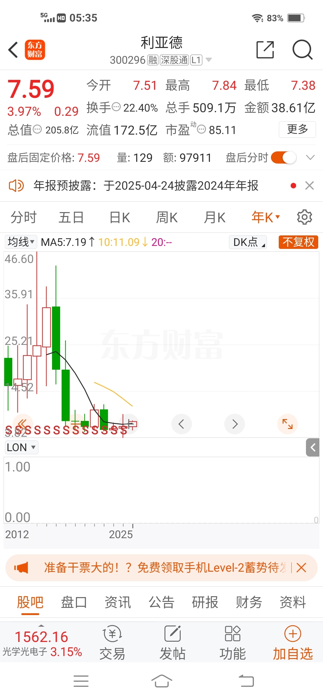$利亚德(SZ300296)$ 年线四十多,科技年,八十不为过