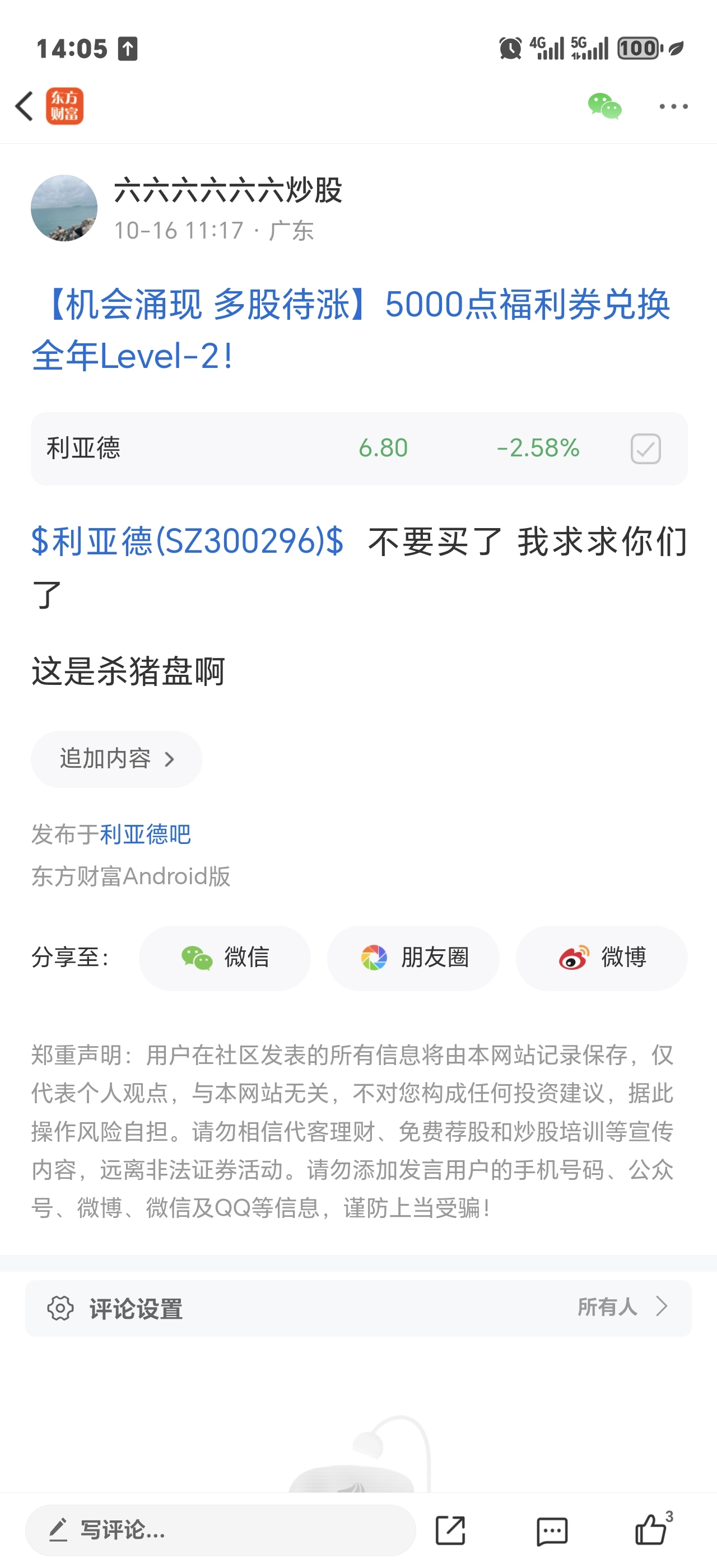 温馨提示: 1.根据《证券法》规定,禁止编造、传播虚假信息或者误导性信息,扰乱证券市场;2.用户在本社区发表的所有资料、言论等仅代表个人观点,与本网站立场无关,不对您构成任何投资建议。用户应基于自己的独立判断,自行决定证券投资并承担相应风险。《东方财富社区管理规定》