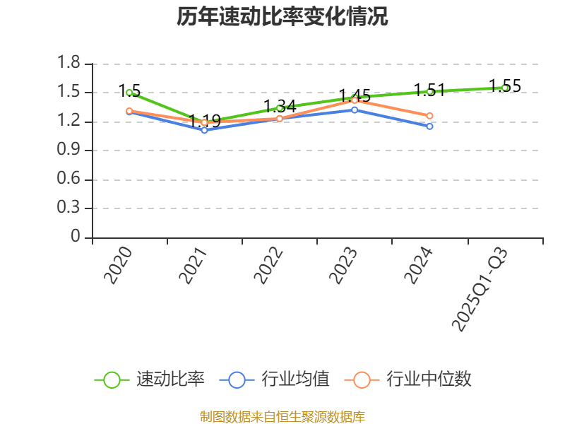 2025年前三季度,公司流动比率为2.11,速动比率为1.55。
