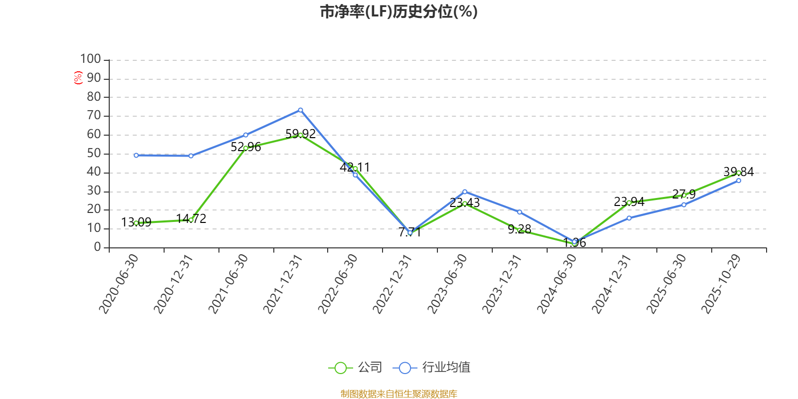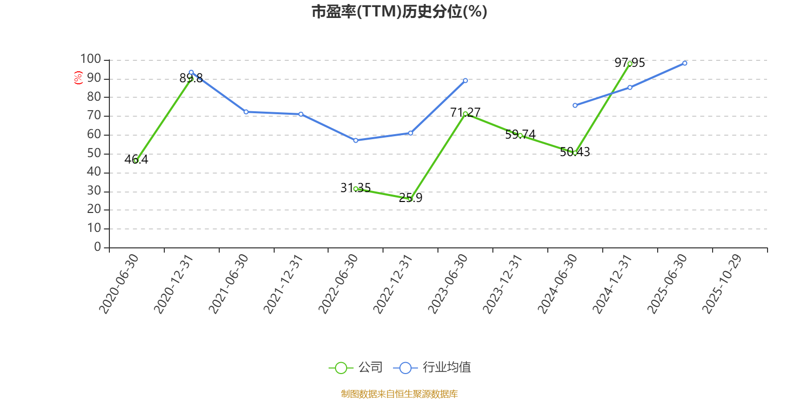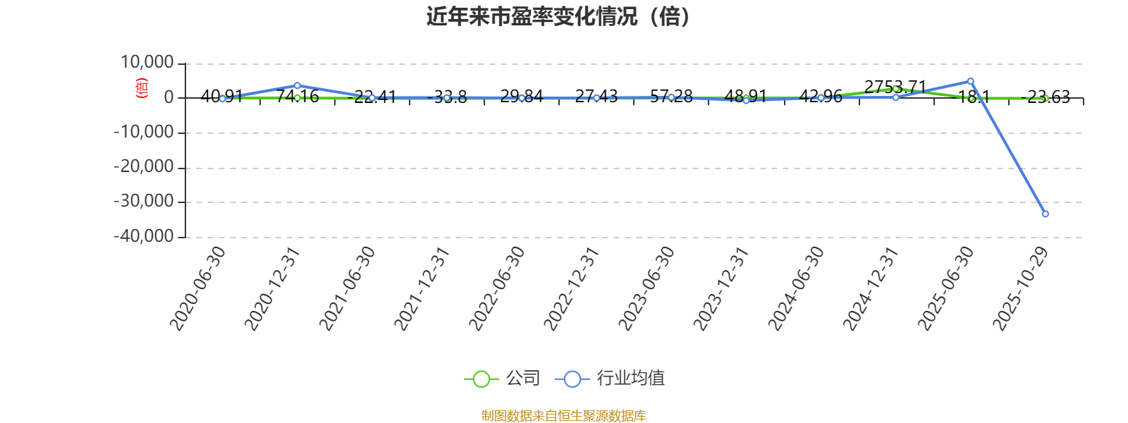市盈率、市净率为负时,不显示当期分位数,会导致折线图中断。