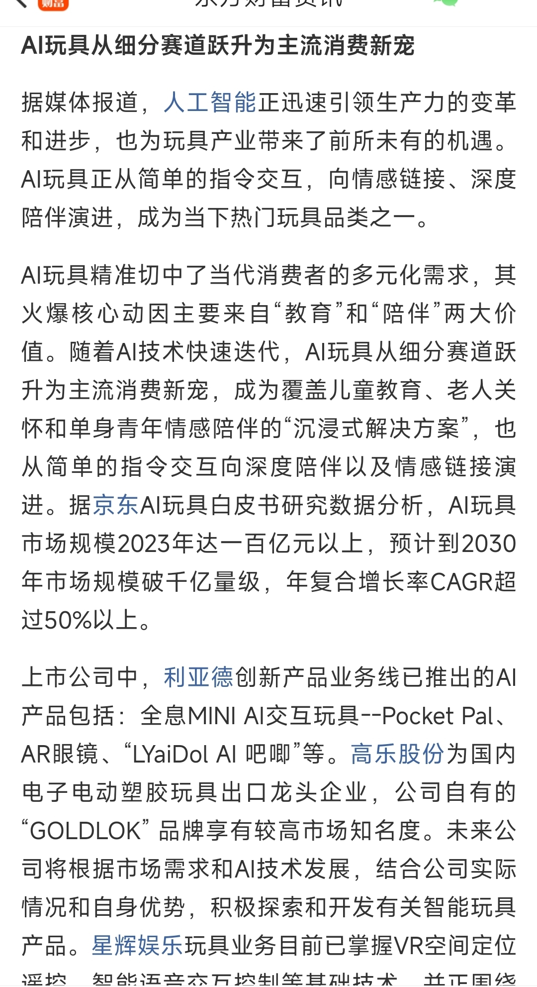 $利亚德(SZ300296)$ AI玩具点名第一个的市场地位,股价走势没反应出来,这可能与公司的市值水平有关。
